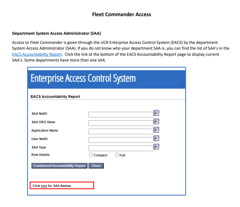 Fleet Commander SAA Access